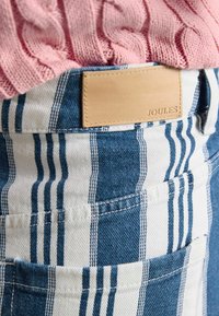 Schwarze Jeans aus Denim mit gerade geschnittenem Bein, ausgestattet mit fünf Taschen, goldfarbenen Nieten und einem vorderen Metallknopfverschluss.