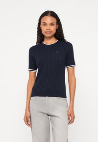 Die Größe fällt in der Farbe dunkelblau klein aus. Daher empfehlen wir, eine Größe größer zu bestellen.