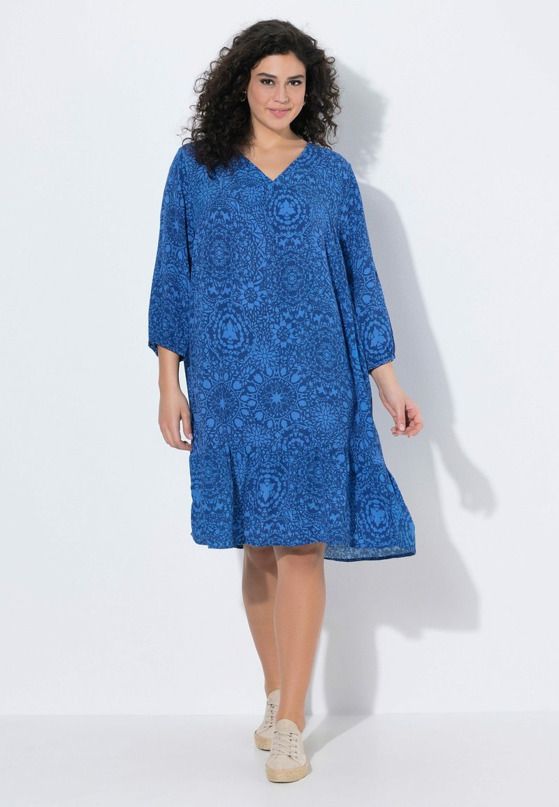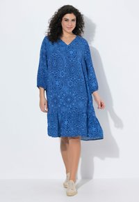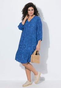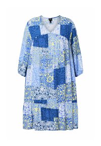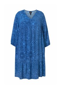 KLEID, KACHELMUSTER, A-LINIE, V-AUSSCHNITT, 3/4-ARM - Freizeitkleid - azure