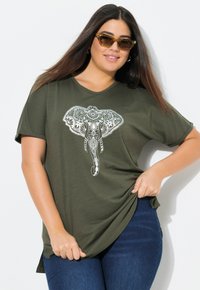 MANDALA ANIMAL MOTIF SHORT SLEEVE - T-Shirt print - olive gray