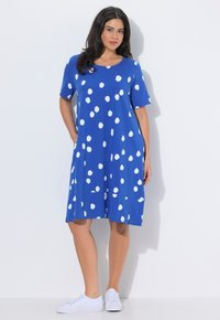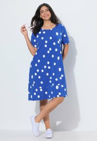 MIDIKLEID, TUPFEN, A-LINIE, RUNDHALS, HALBARM - Freizeitkleid - azure