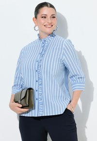 SEERSUCKER- A-LINIE, STEHKRAGEN, 3/4-ARM RÜSCHEN - Hemdbluse - snow white