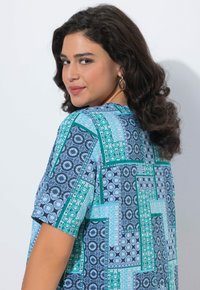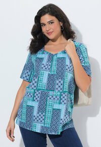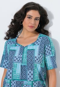 ZIERFALTEN A-LINIE HERZAUSSCHNITT HALBARM - T-Shirt print - deep aqua