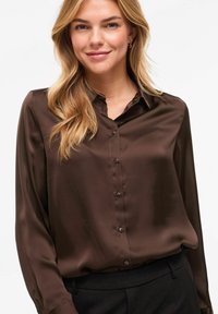VISOFIE LANGARM - Hemdbluse - coffee bean