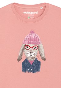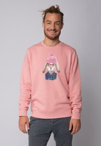 Rosa Sweatshirt aus Baumwolle mit Rundhalsausschnitt und langen Ärmeln, mit einem Grafikdruck von einem Hasen, der eine Brille und eine Mütze trägt.