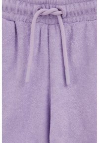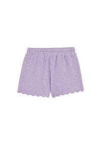 Fliederfarbene Shorts aus Frottee mit elastischem Bund, Kordelzug, Seitentaschen und gewelltem Saumdetail.